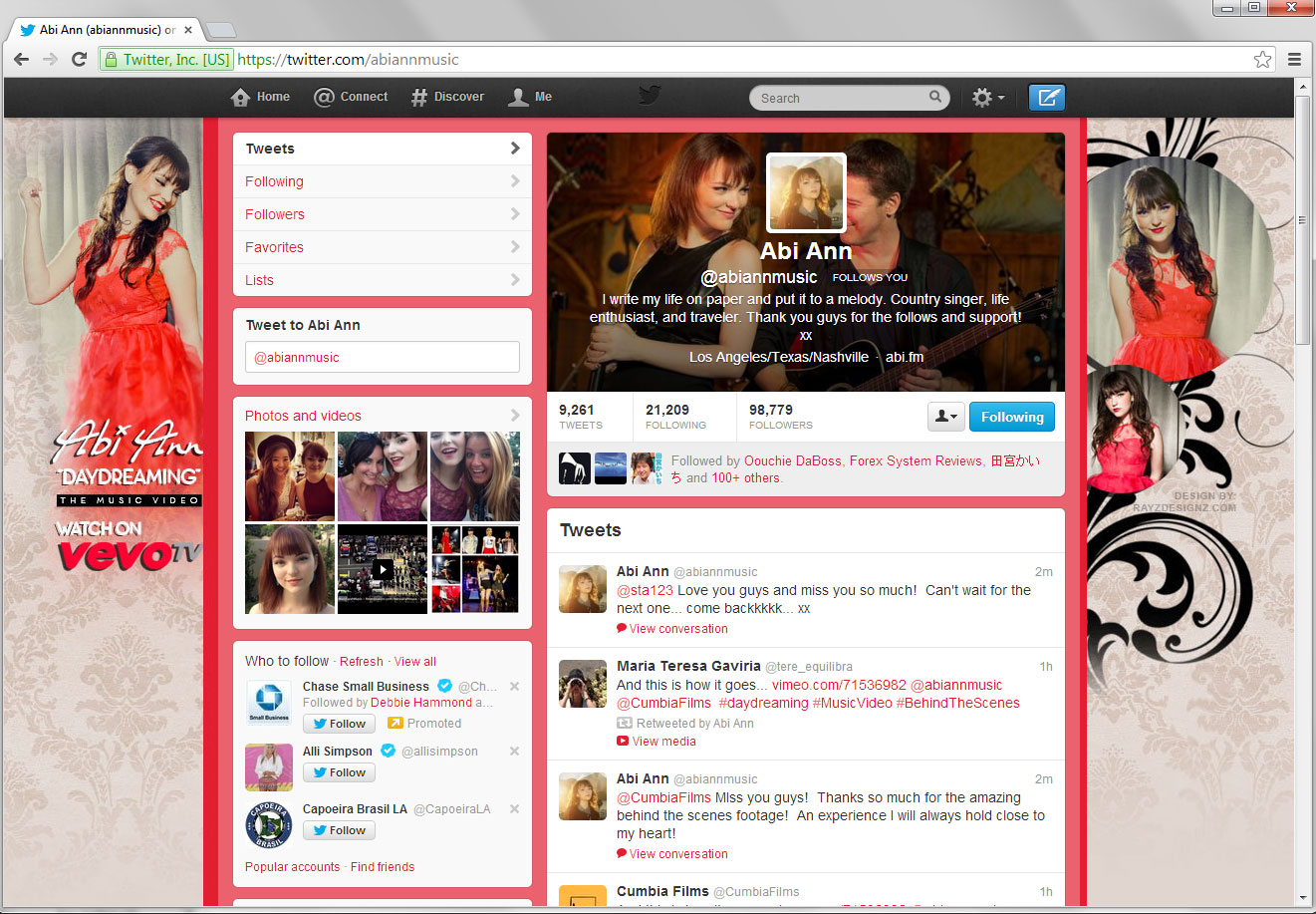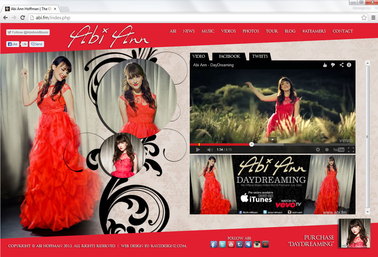 Abi Ann – “Daydreaming” Website & Social Media Design Design by: Rayz Designz By admin|2013-08-28T21:11:48-07:00August 28th, 2013|Social Media Design, Website|Comments Off on Abi Ann – “Daydreaming” Website & Social Media Design Share This Story, Choose Your Platform! facebooktwitterlinkedinredditwhatsapptumblrpinterestvkEmail About the Author: admin Related Posts Zendaya – Facebook Design Zendaya – Facebook Design Zendaya – Facebook Design Zendaya – Facebook Design Blake Lewis & Elliott Yamin – Poster Design Blake Lewis & Elliott Yamin – Poster Design Austin North– Facebook Design Austin North– Facebook Design